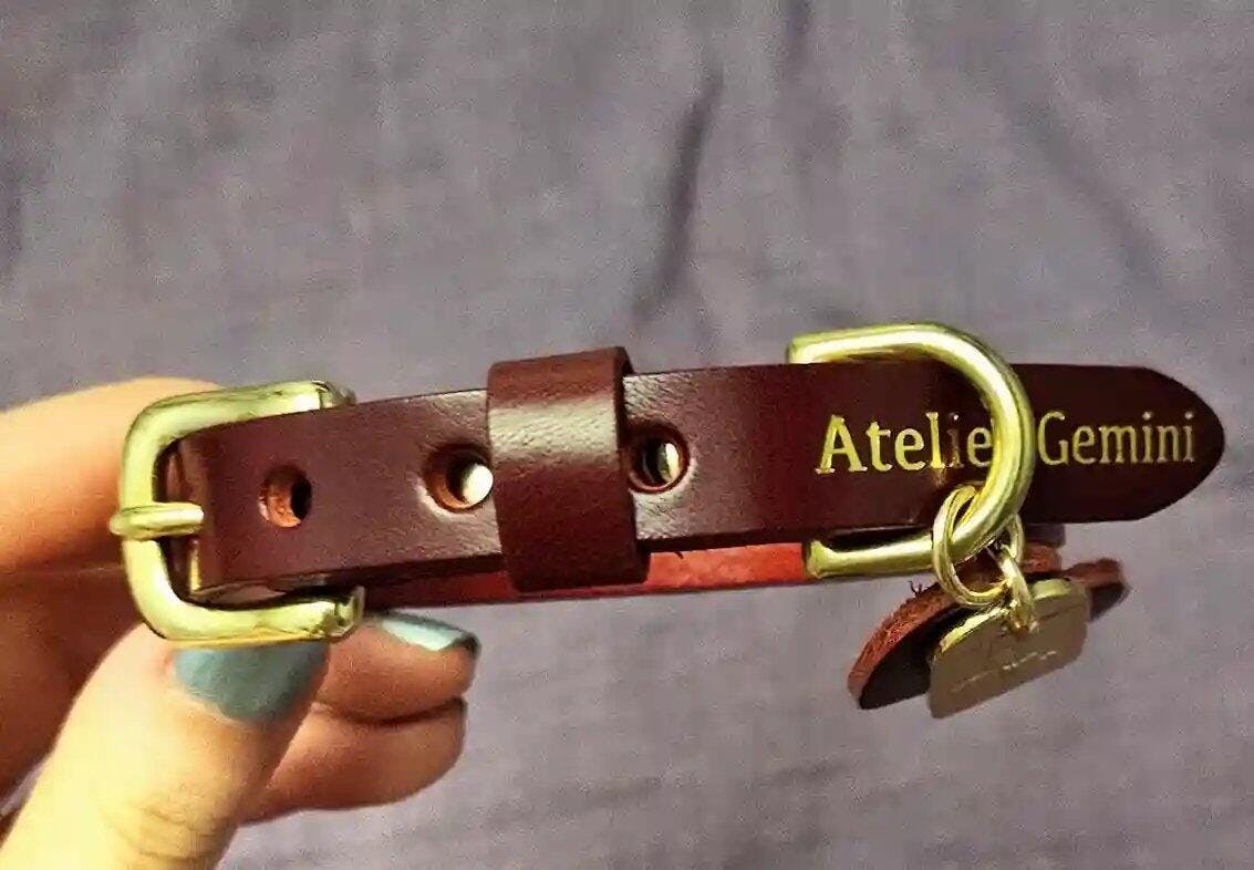 Notre cuir de vachette première qualité, disponible en plusieurs teintes, est tanné végétal naturel, sans produits chimiques louches. Même sous la pluie, notre collier pour chien en cuir résiste à l'eau, ne décolore pas. Et pour l'entretien, un coup de chiffon de temps en temps suffit.
